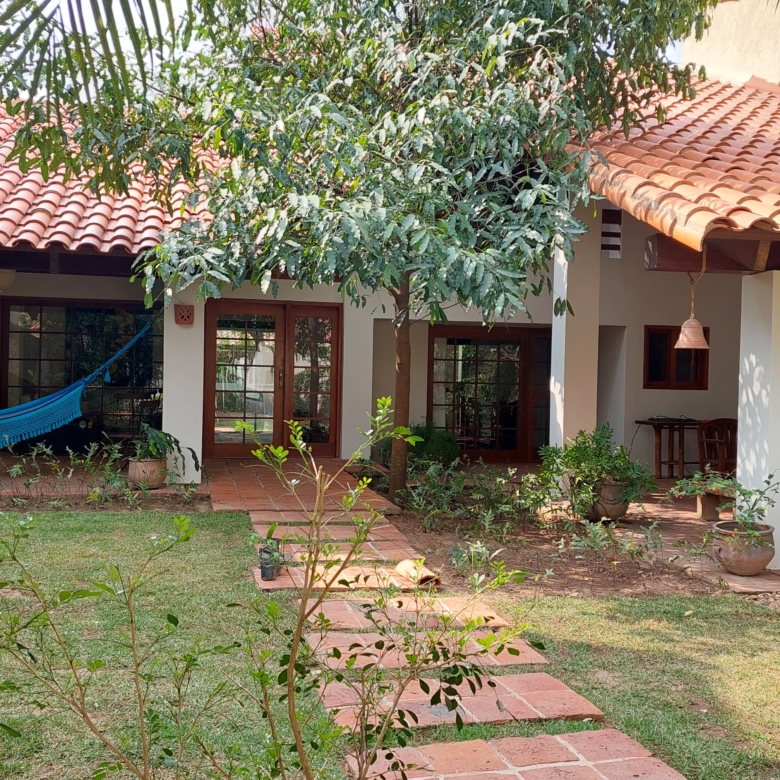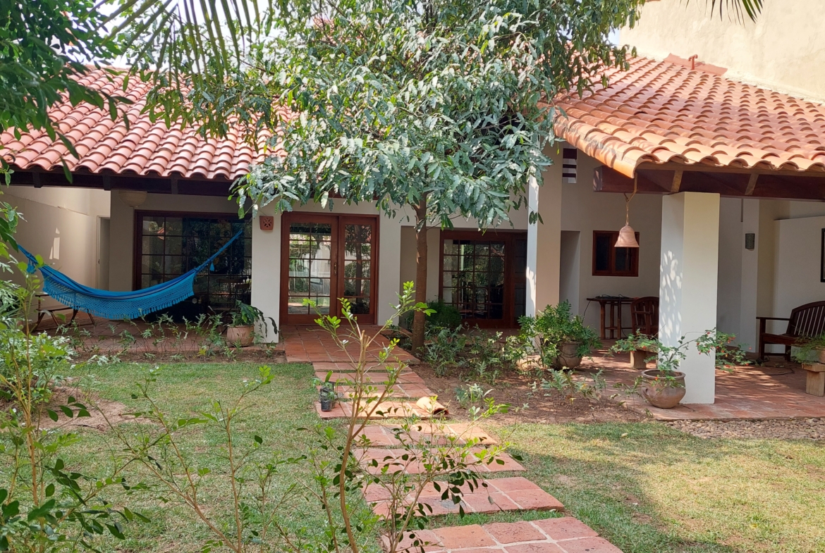 Encantadora casa diseñada por el arquitecto Rolando Aparicio, rodeada de jardines con árboles frutales como palta, limón y achachairú. Ubicada en el Condominio Pirai, que se encuentra a solo dos cuadras del colegio francés.